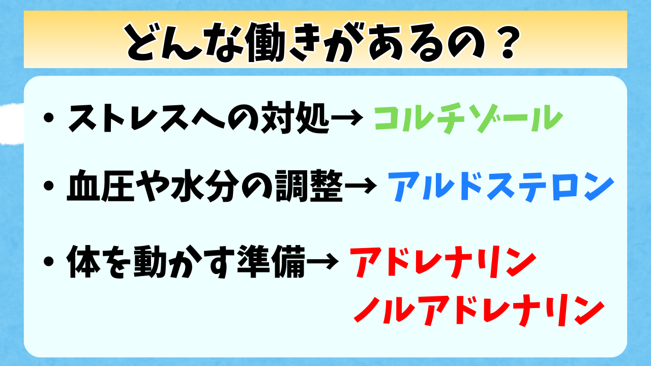 ストレスに対処するから『ストレスホルモン』なんて呼ばれているね。