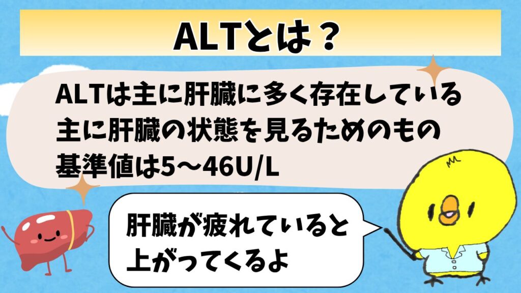 だからALTに関しては、主に肝臓の状態を見るためのものになるね。