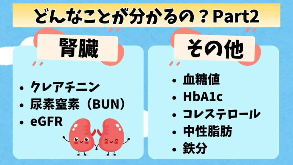 ちなみに検査項目については、血液検査のところで詳しくまとめているよ。