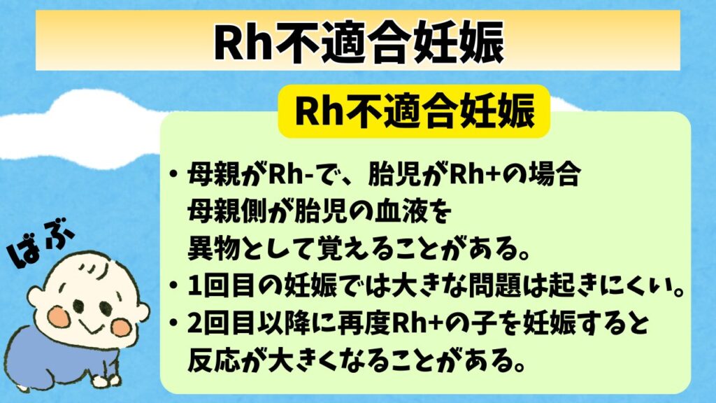 特にお母さんがRh-で、赤ちゃんがRh+の場合には注意が必要になるんだよ。