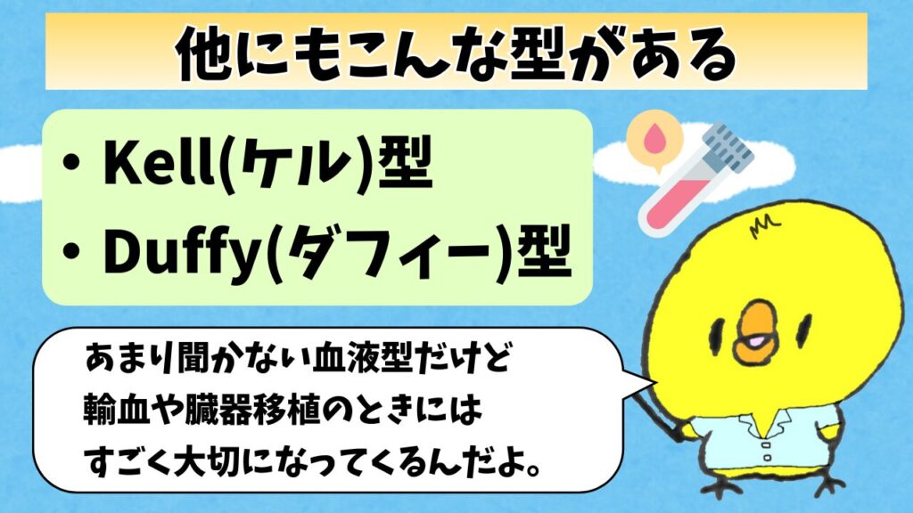 今回はRhについて解説したけど、実は血液型ってこれだけじゃないんだ。