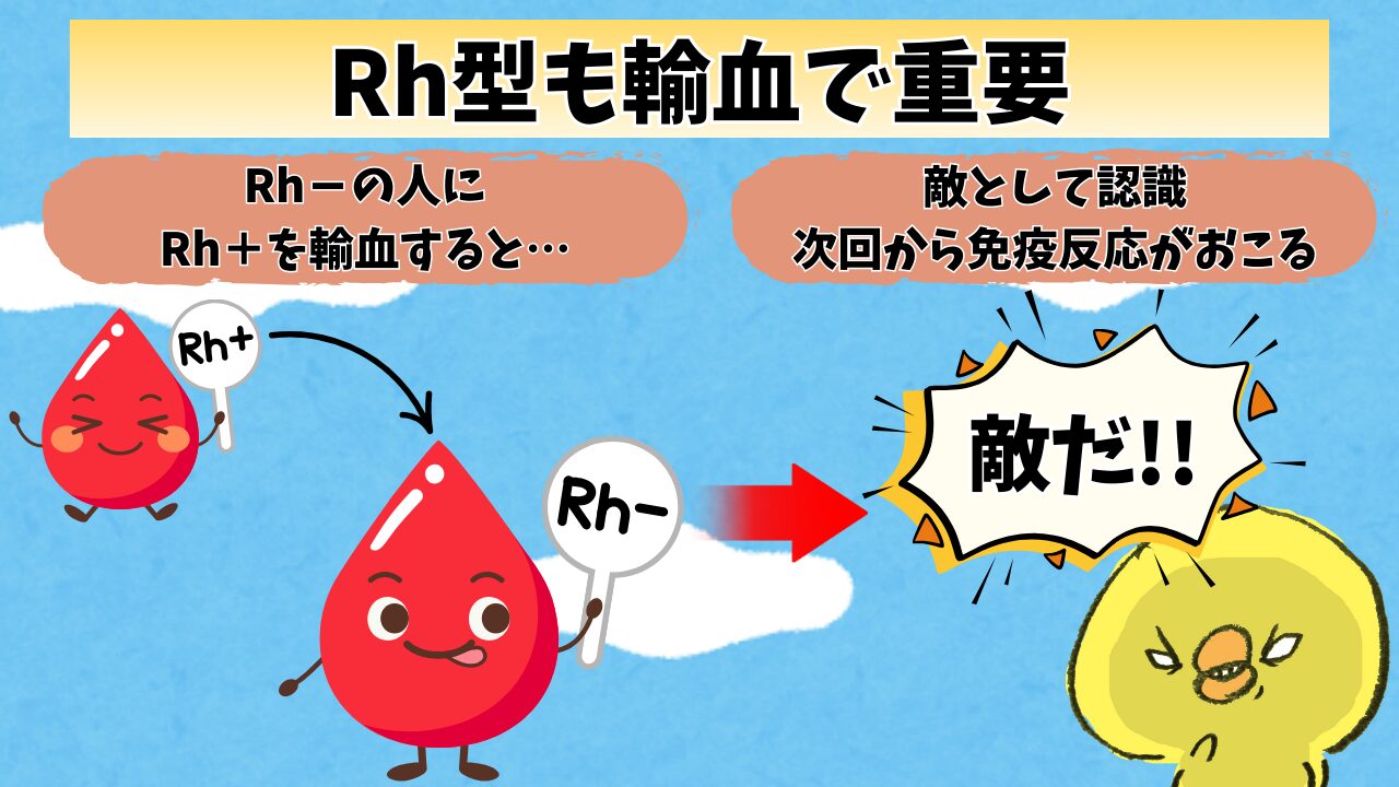 ・輸血ではRh型が一致しないと危険な反応が起こる