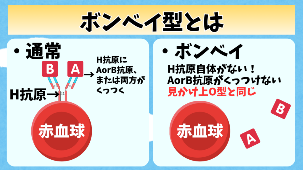 そうだね。O型って誰にでも輸血出来るというイメージがあるけど、ボンベイ型は違うんだよね。