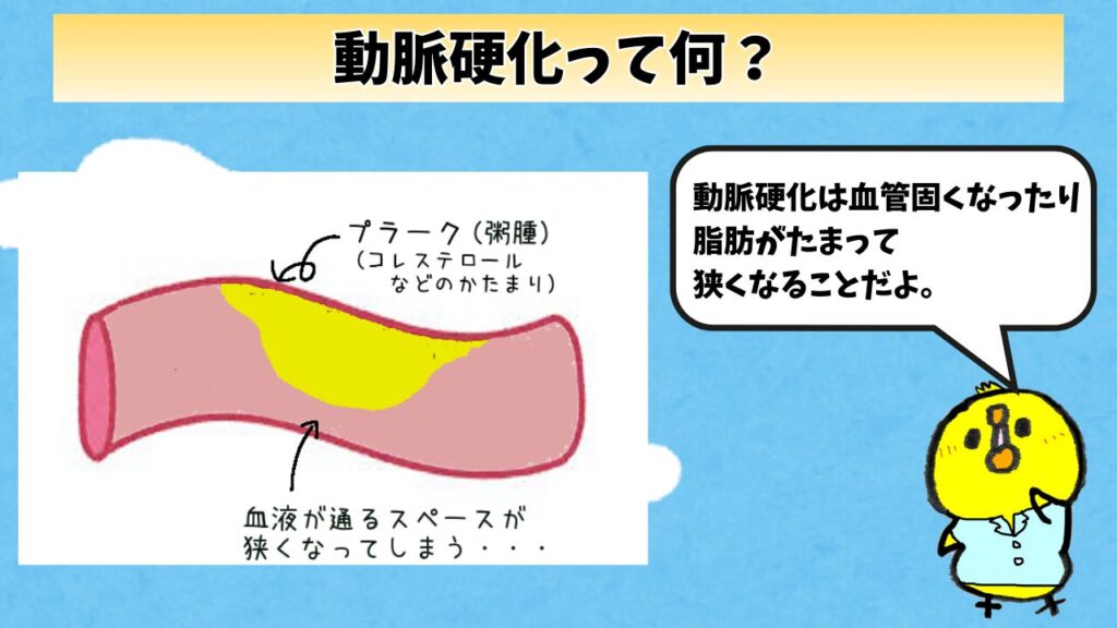 動脈硬化の話が出たから、動脈硬化についても解説していくね。