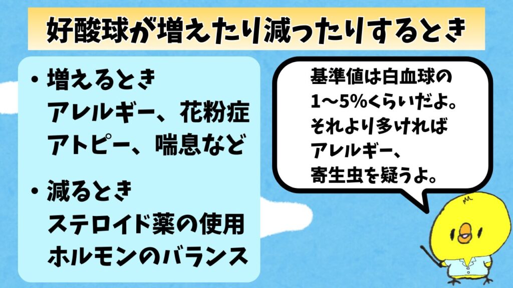 今日は「好酸球(こうさんきゅう)」についての話になるよ。