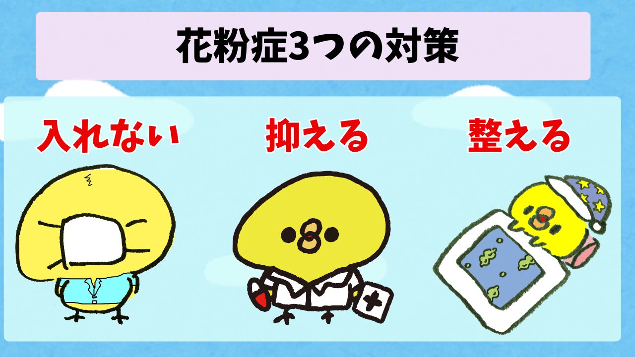 ・花粉症の3つの対策は「入れない」「抑える」「整える」