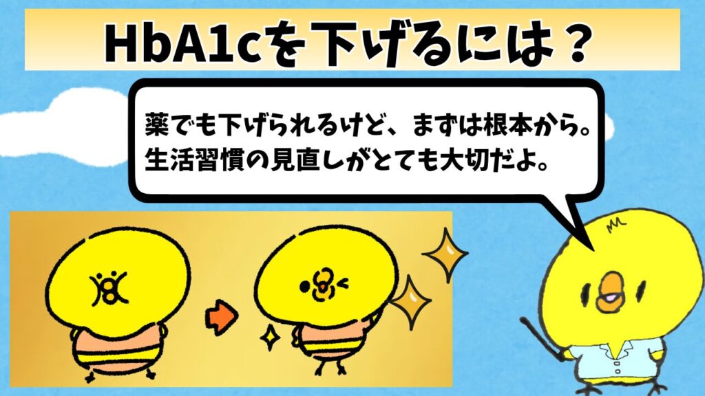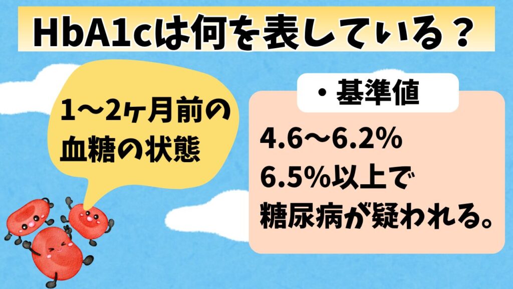 ちなみに血液検査の結果だと『HbA1c』と表示されているね。