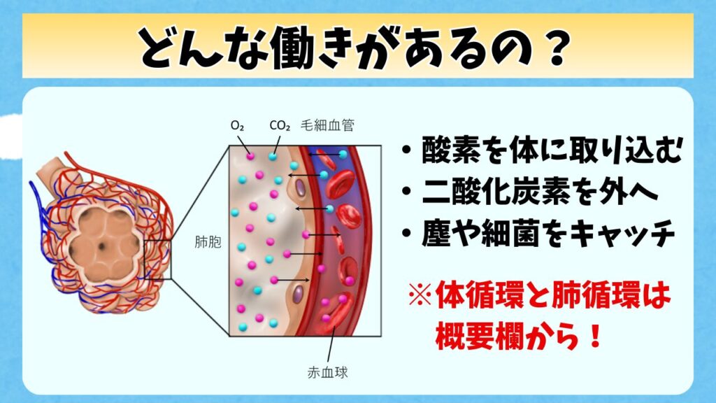 肺の構造が分かったところで、次は働きだね。