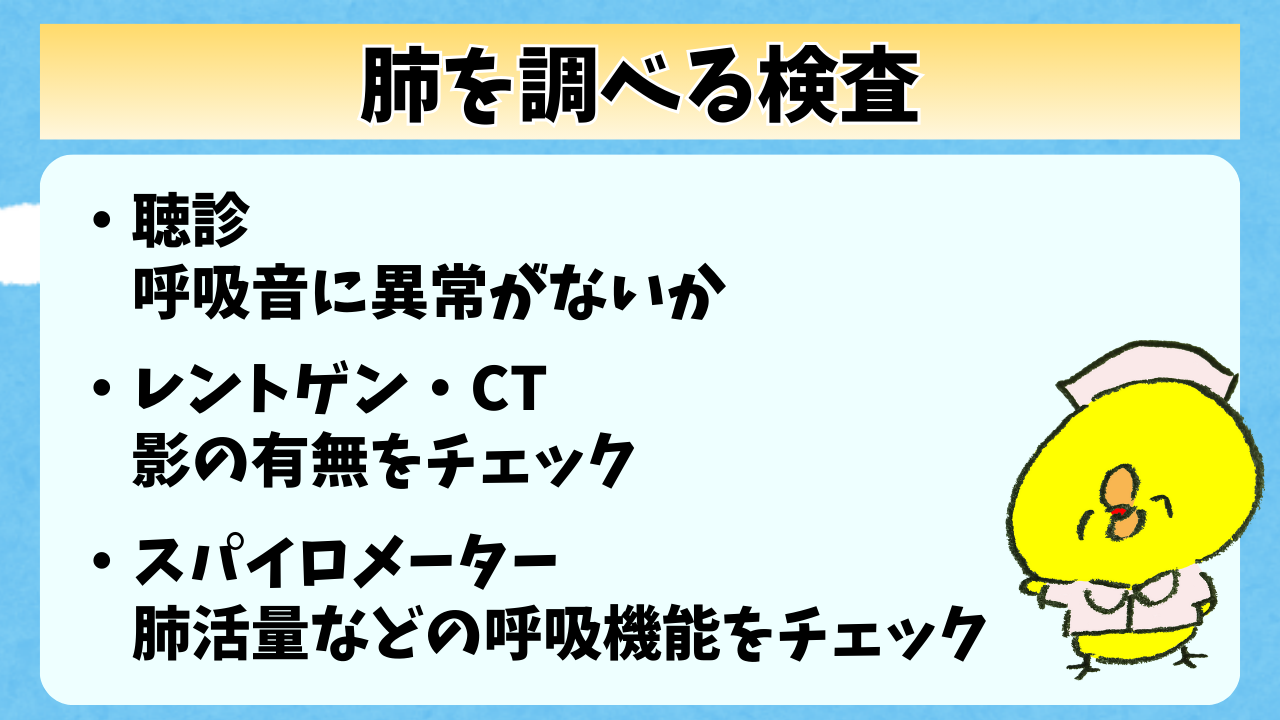 次は肺を調べる検査についてまとめていくよ。