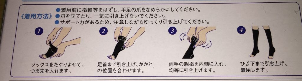 こうやって圧の強いメディキュットのような靴下やストッキングを購入する時に重要なことは2つだよ。