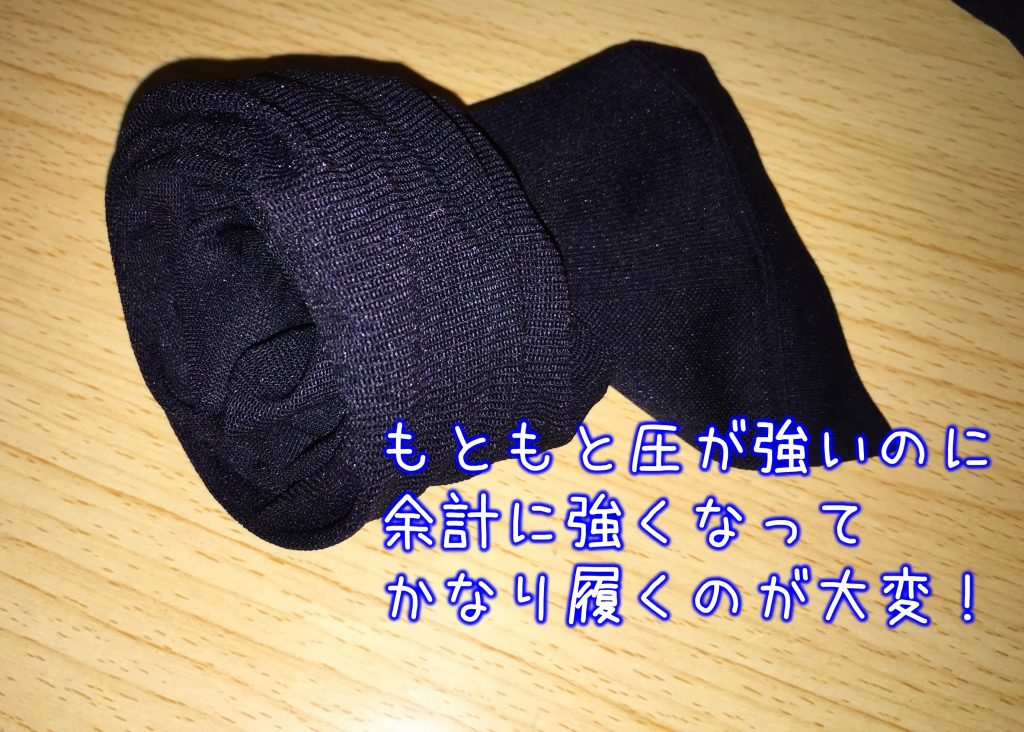 メディキュットって履いてみるとわかるんだけど、かなりぎゅっと締め付けられるよね。