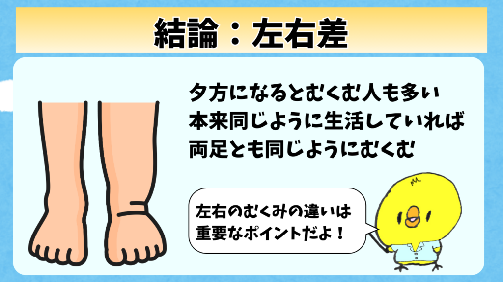 ・足のむくみで最初に確認すべきポイントは「左右差があるかどうか」