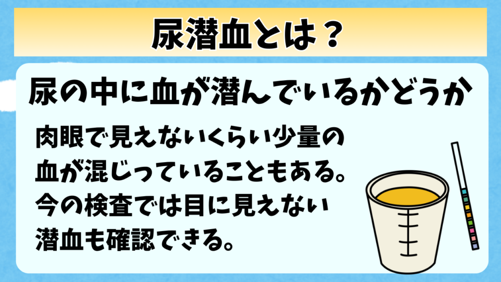 今回尿の中に血が混じっている尿潜血という話をしたよ。