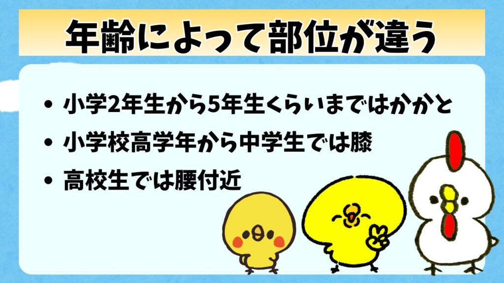 しょう君の場合は膝だったけど、痛みが出る場所は年齢によって変わってくるんだ。