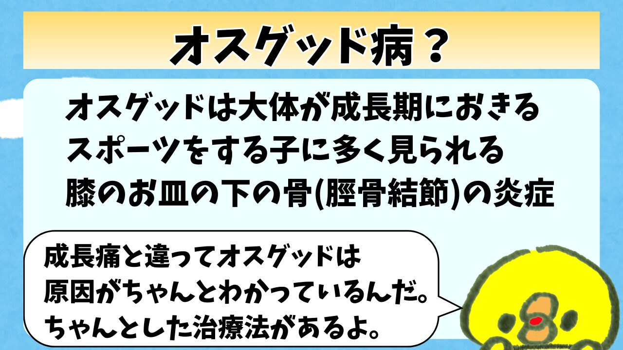 成長期の痛みの中でオスグッドというのは原因がはっきりわかっているんだ。