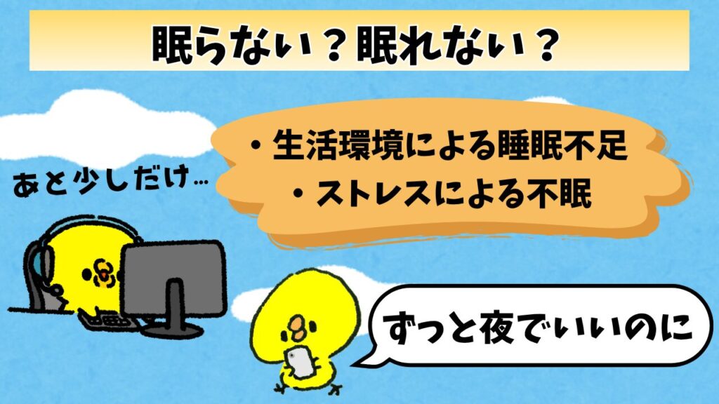 単純に忙しくて寝られないという人以外にも成人の20%の人は