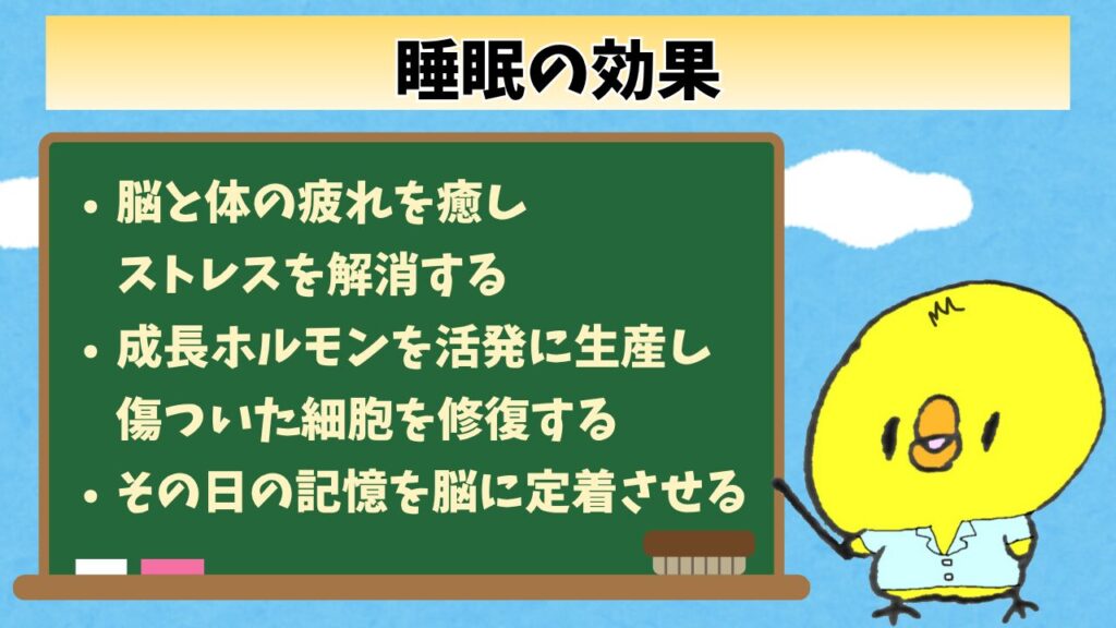 最後に睡眠の効果として、睡眠時に体の中でどういったことが起こっているのかを話していくね。