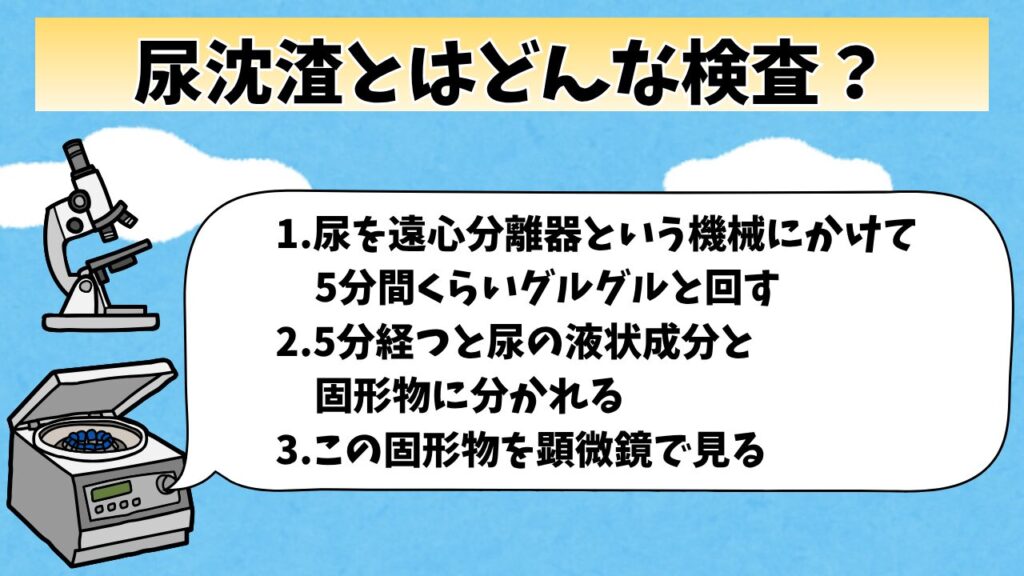 尿検査なら聞いたことあるって人も多いけど、尿沈渣って言葉はあまり聞かないかもしれないね。