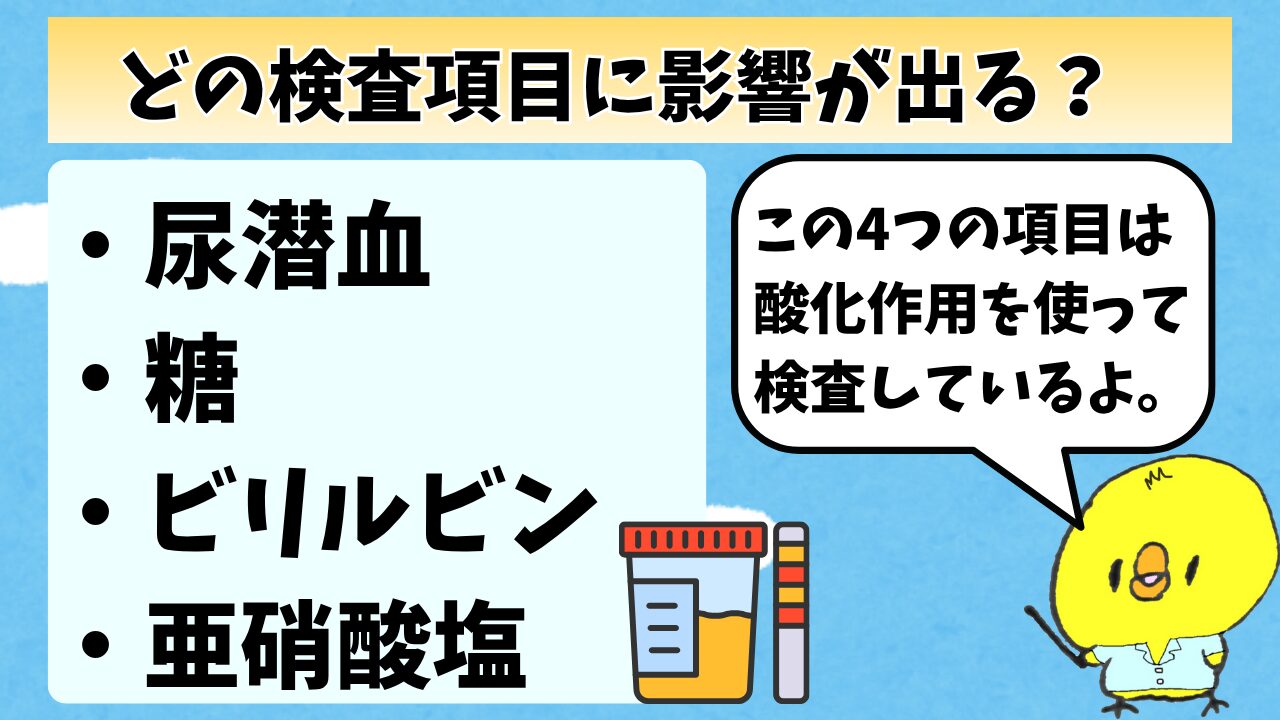 今日はビタミンC(アスコルビン酸)が、尿検査にどういう影響があるかを話したよ。